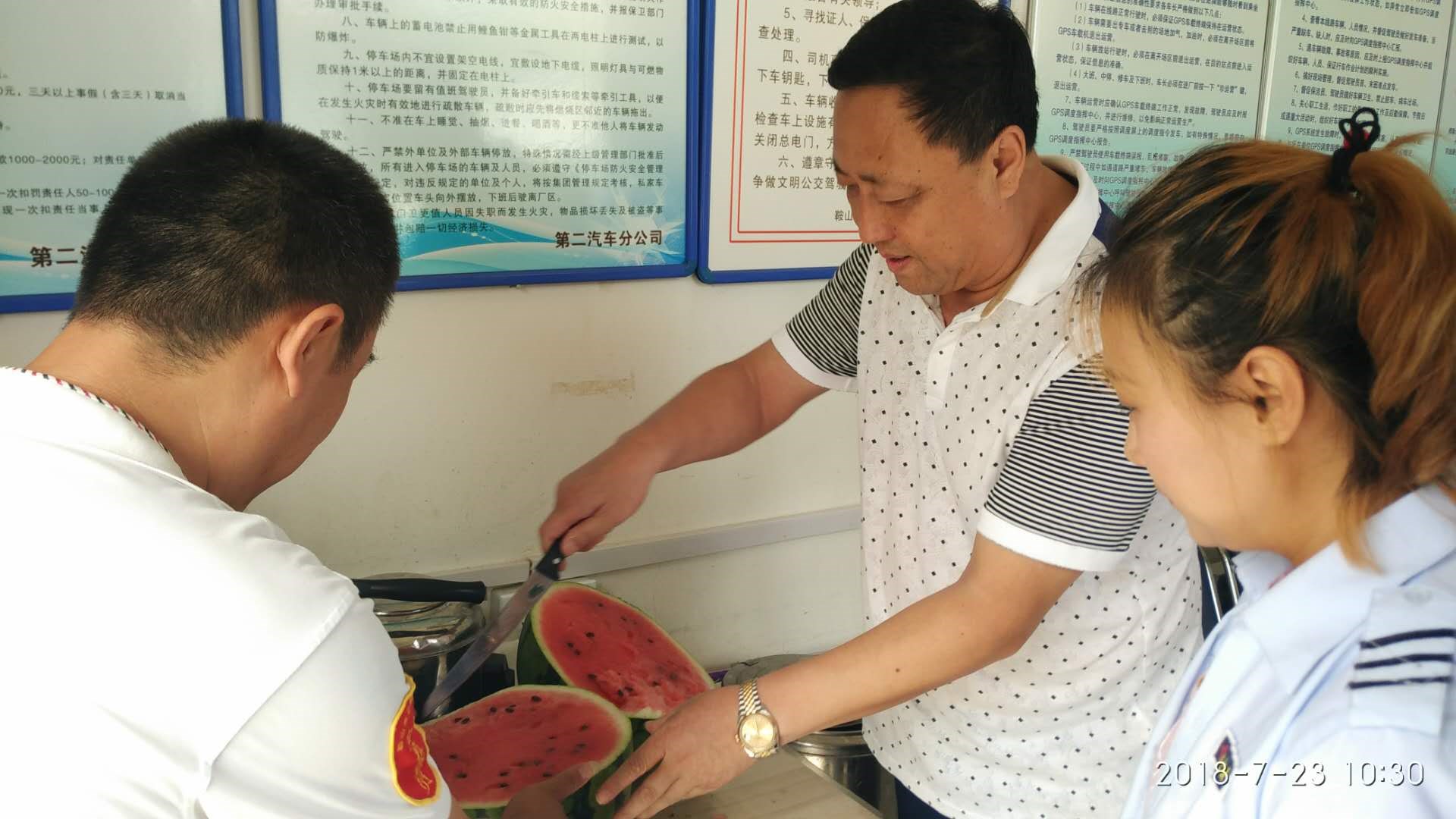 為使交運(yùn)集團(tuán)廣大一線職工度過一個(gè)安全、健康、衛(wèi)生、清涼的夏季,切實(shí)做好暑期安全生產(chǎn)、防暑降溫工作,牢固樹立“服務(wù)一線”意識(shí),入夏以來,交運(yùn)集團(tuán)開展了“情系一線職工 平安度夏送清涼”活動(dòng)。在集團(tuán)黨委書記、董事長羅玉艷的帶領(lǐng)下,集團(tuán)領(lǐng)導(dǎo)班子成員和各基層營運(yùn)公司及路隊(duì)黨政領(lǐng)導(dǎo)多次頂著酷暑到一線調(diào)度室慰問在高溫天氣下仍堅(jiān)守在營運(yùn)一線的職工,與他們親切交談,叮囑他們要注意身體,注意高溫下的自我調(diào)節(jié),防止高溫中暑,注意安全,杜絕疲勞作業(yè),并親手把西瓜、冰果、冰鎮(zhèn)礦泉水等防暑降溫慰問品送到職工手中,實(shí)實(shí)在在把集團(tuán)對(duì)他們的關(guān)懷送到了每位職工心中。職工們表示,集團(tuán)為了給我們駕駛員創(chuàng)造良好的工作環(huán)境,不僅為我們送來防暑降溫物品,還為我們的調(diào)度室配備了空調(diào)、冰箱、飲水機(jī),更新了部分新能源空調(diào)電動(dòng)車,使我們的工作環(huán)境越來越好,工作起來越來有干勁。在此次送清涼活動(dòng)中各基層單位根據(jù)自身實(shí)際情況,遇高溫天氣時(shí)由黨政領(lǐng)導(dǎo)親自帶隊(duì)為職工發(fā)放西瓜、冰果、礦泉水等防暑降溫慰問品,并組織維修人員和安全管理人員對(duì)各公交場(chǎng)站、車輛安全設(shè)施、調(diào)度室衛(wèi)生等方面進(jìn)行全面檢查,竭力為堅(jiān)守在一線的公交駕駛員提供安全、舒適的工作環(huán)境。 “情系一線職工 平安度夏送清涼”活動(dòng)的開展,激發(fā)了一線職工愛崗敬業(yè)的熱情和工作的積極性,為平安度夏、健康生活、安心工作提供了有力的后勤支持與保障,為企業(yè)健康、平穩(wěn)發(fā)展起到了積極的推動(dòng)作用。