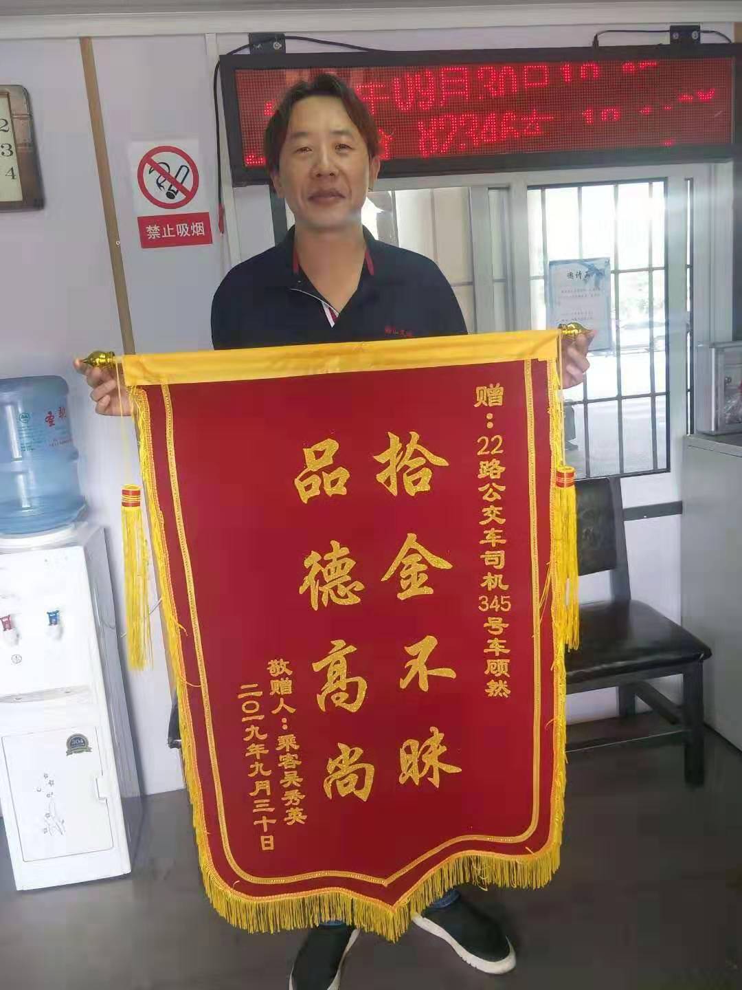 “感謝公交公司培養(yǎng)了這么好的師傅啊,要不是你們主動(dòng)打電話給我,我丟都不道哪丟的,我還得去補(bǔ)證件太麻煩了!” 9月30日一大早,家住在鐵西區(qū)的吳大娘手拿錦旗急匆匆來到了公交22線樞紐站休息室內(nèi),找到3080345號車駕駛員顧然師傅,親自將印有“品德高尚,拾金不昧”的錦旗送到他的手中。 原來在3天前的下午,吳大娘在鐵西區(qū)委乘坐22線公交車后,因隨身攜帶的東西太多,把手提包及背包都放在了座椅的一側(cè),吳大娘在二臺子站下車后回到家中突然發(fā)現(xiàn)背包沒有了,吳大娘心急如焚,因?yàn)楸嘲锊粌H僅有幾十元的現(xiàn)金還有很多重要的證件及證明材料,這些東西對自己十分重要,補(bǔ)辦十分不便。因?yàn)樯狭四昙o(jì),吳大娘記不起背包到底丟在哪里了,正在焦急尋找之時(shí),吳大娘接到了鞍山交運(yùn)集團(tuán)三公司客運(yùn)八隊(duì)駕駛員顧師傅的電話,詢問她是否丟失了一個(gè)背包。顧大娘接到電話后立即趕到站前樞紐站調(diào)度室,取回了遺失的背包!原來在公交車到終點(diǎn)后,顧師傅在車內(nèi)例行巡視時(shí)發(fā)現(xiàn)了這個(gè)背包,打開后找到了有吳大娘的聯(lián)系方式并撥打了這個(gè)電話。 22線不僅是文明服務(wù)線路更是交運(yùn)集團(tuán)迎賓線路,從創(chuàng)建迎賓線路開始,全體22線駕駛員始終不忘初心,為的就是服務(wù)好每一名乘客。顧然同志所在路隊(duì)已對顧然同志給予了公開表揚(yáng),并勉勵(lì)全體同志要把“學(xué)習(xí)雷鋒好榜樣,優(yōu)質(zhì)服務(wù)暖人心”的精神繼續(xù)發(fā)揚(yáng)。