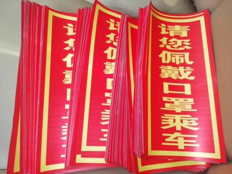恢復(fù)通車后為提醒廣大乘客佩戴口罩乘車,運(yùn)營管理科制做“請您佩戴口罩乘車”的溫馨提示車貼,粘在車輛前門處,提醒廣大乘客佩戴口罩乘車做準(zhǔn)備。
