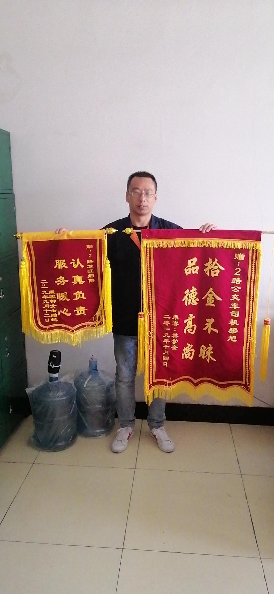 | 10月2日,乘客鐘女士到公交2路線師范學院調(diào)度室將寫有“認真負責、服務(wù)暖心”的錦旗贈與駕駛員蘇江師傅。9月12日上午,鐘女士帶孩子從師范學院乘坐2路車去站前火車站,在乘車過程中鐘女士的乘車卡由孩子拿在手中玩耍,下車時孩子卻將乘車卡塞進后門兩個玻璃的夾縫中,一時 |